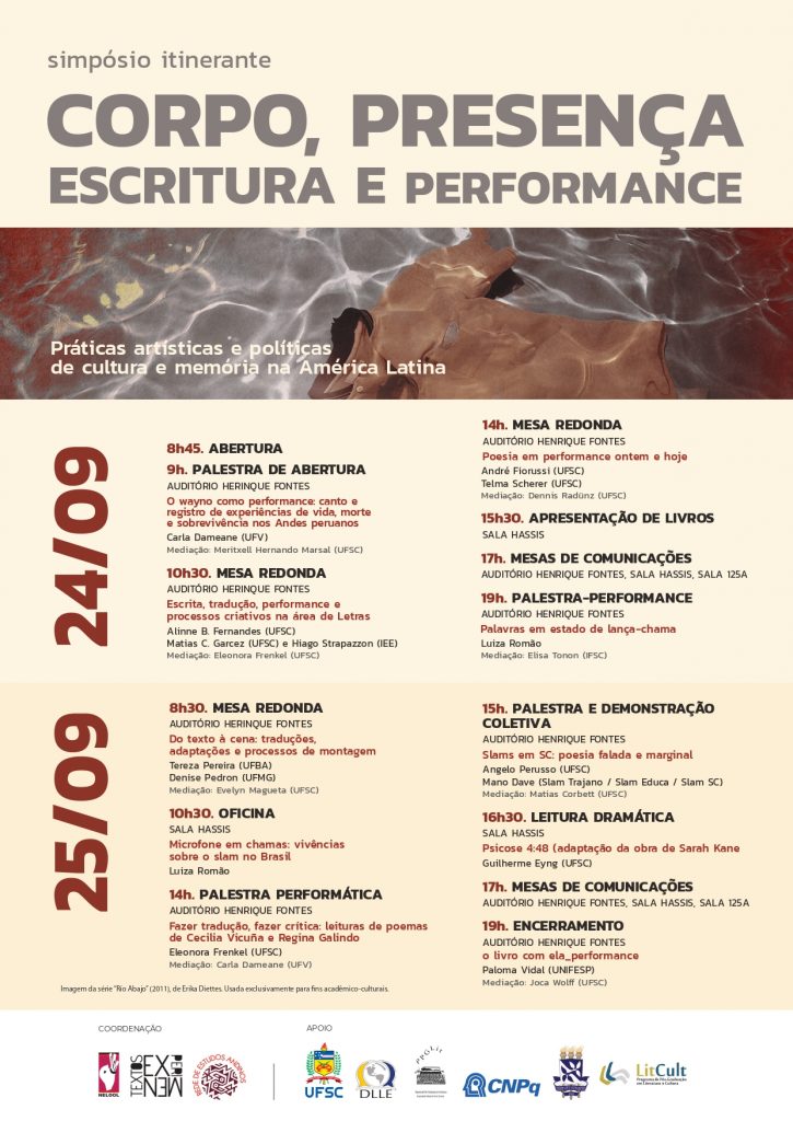 Nos dias 24 e 25 de setembro acontecerá o II Simpósio Itinerante Corpo, Presença, Escritura e Performance, com a participação de colegas de nosso departamento, além de convidadas e convidados externos.