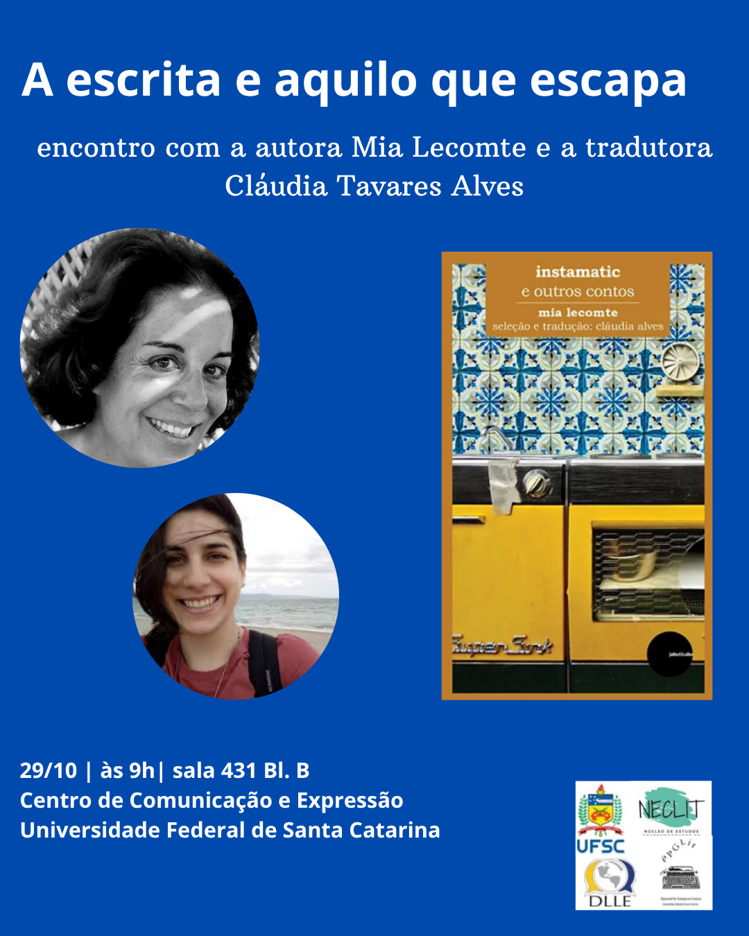 O Programa de Pós-Graduação em Literatura junto com o Núcleo de Estudos Contemporâneos de Literatura Italiana convida toda a comunidade para o encontro com a autora Mia Lecomte e a tradutora Cláudia Tavares.